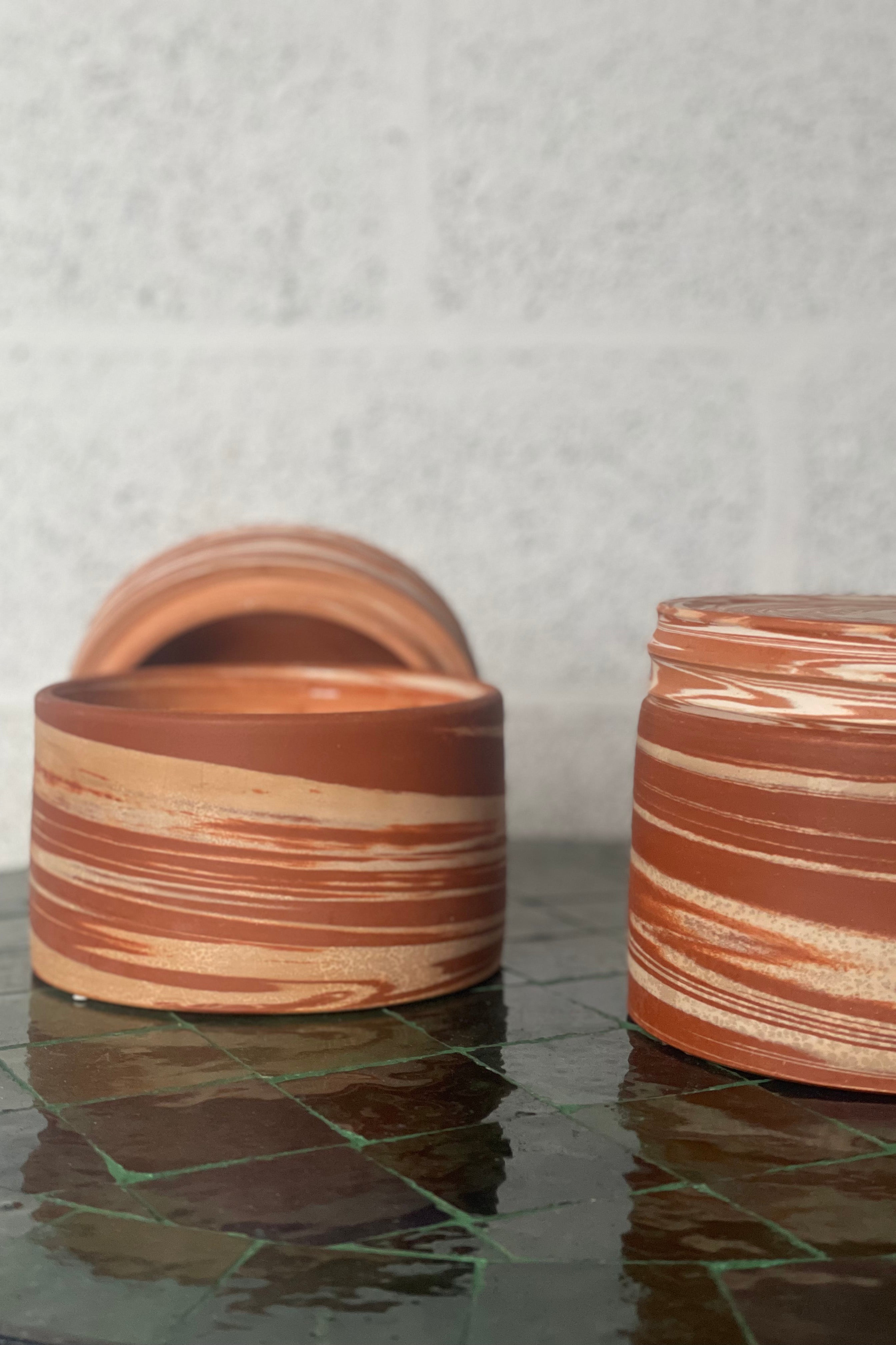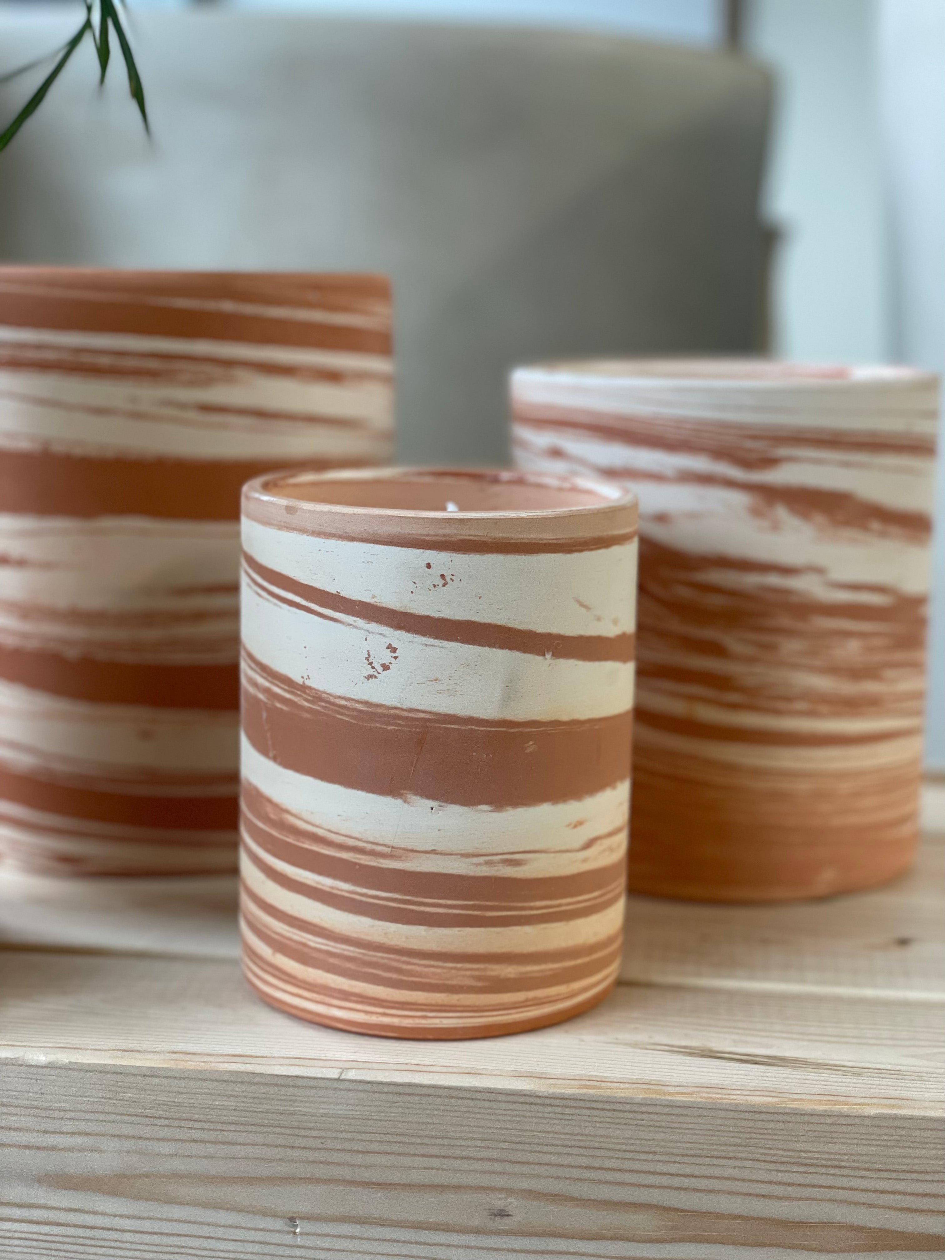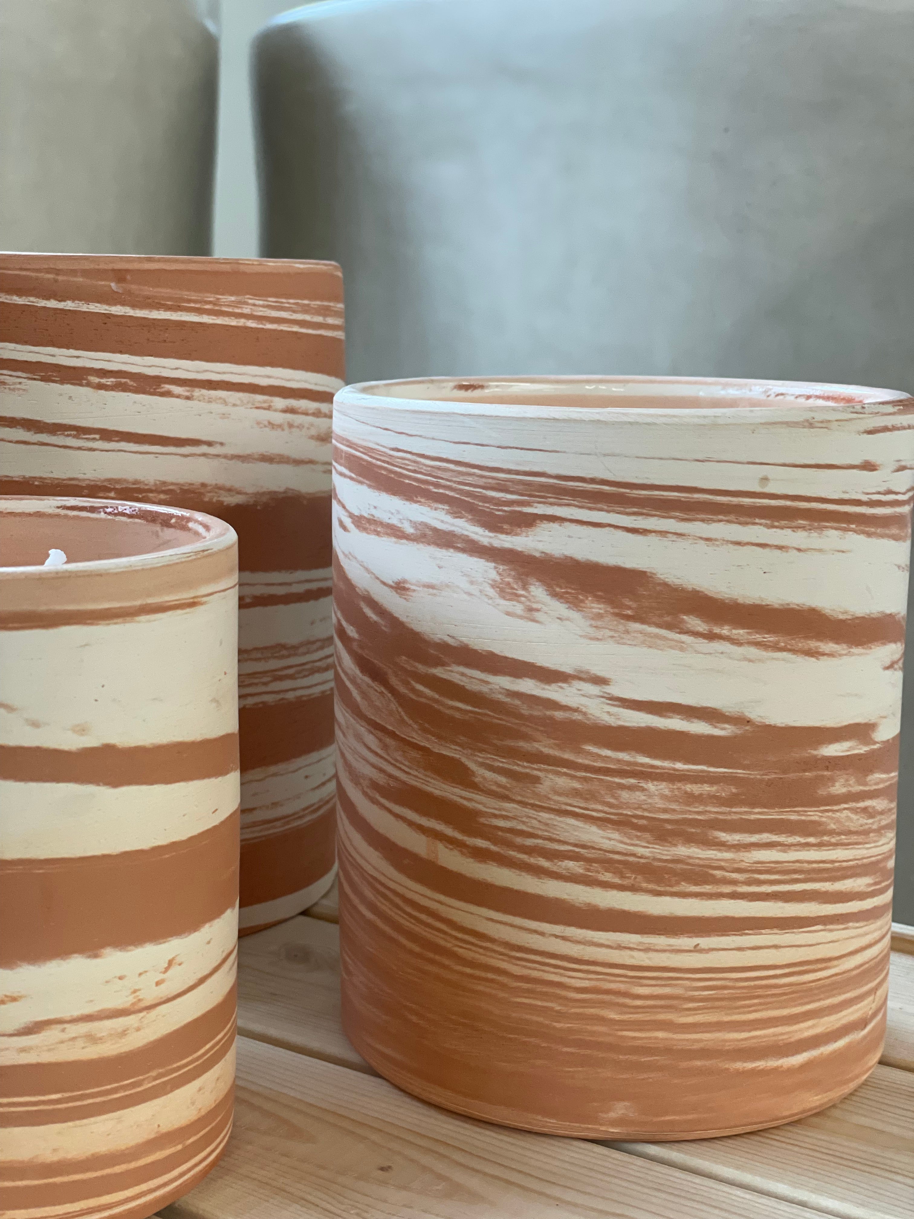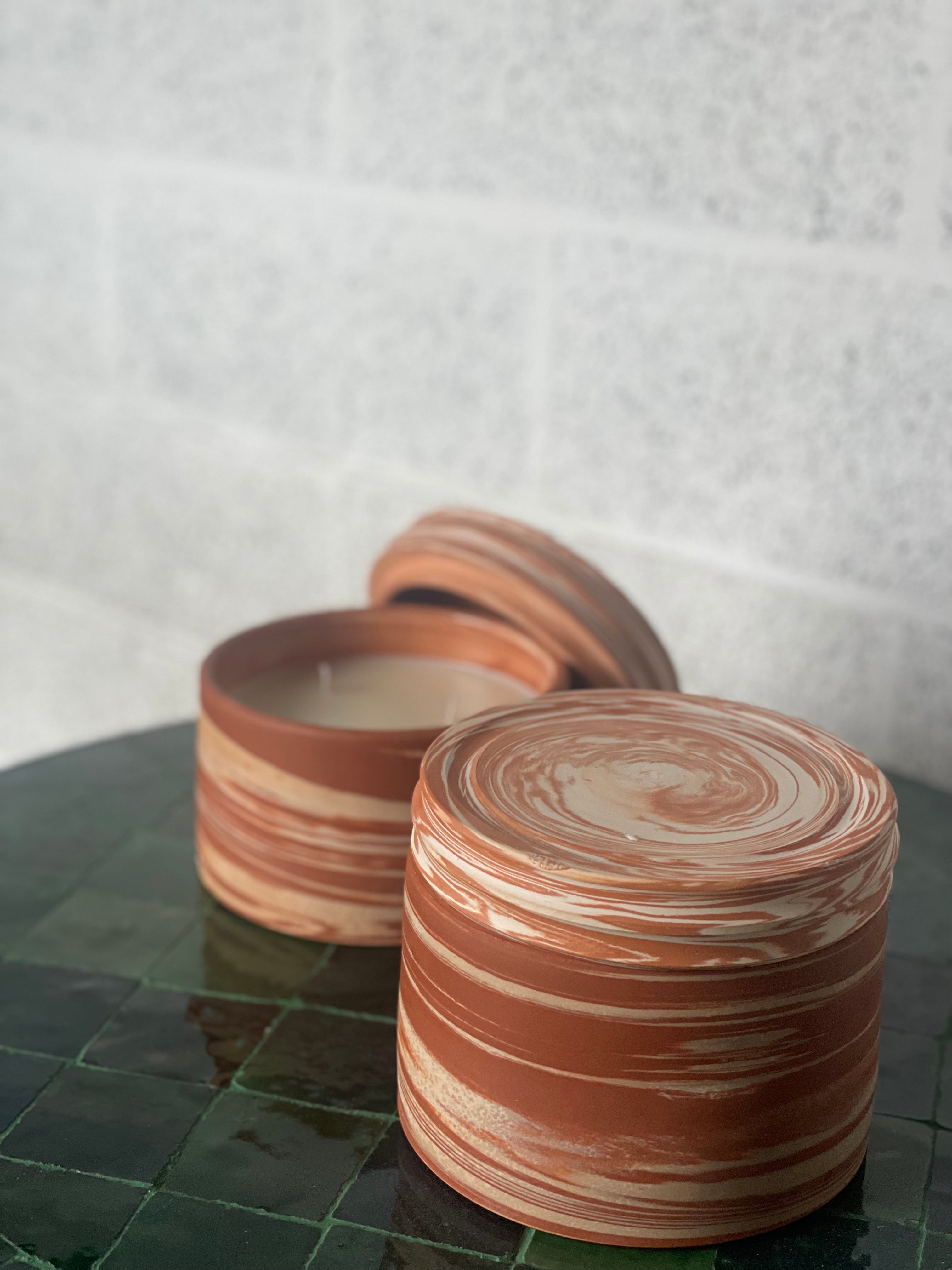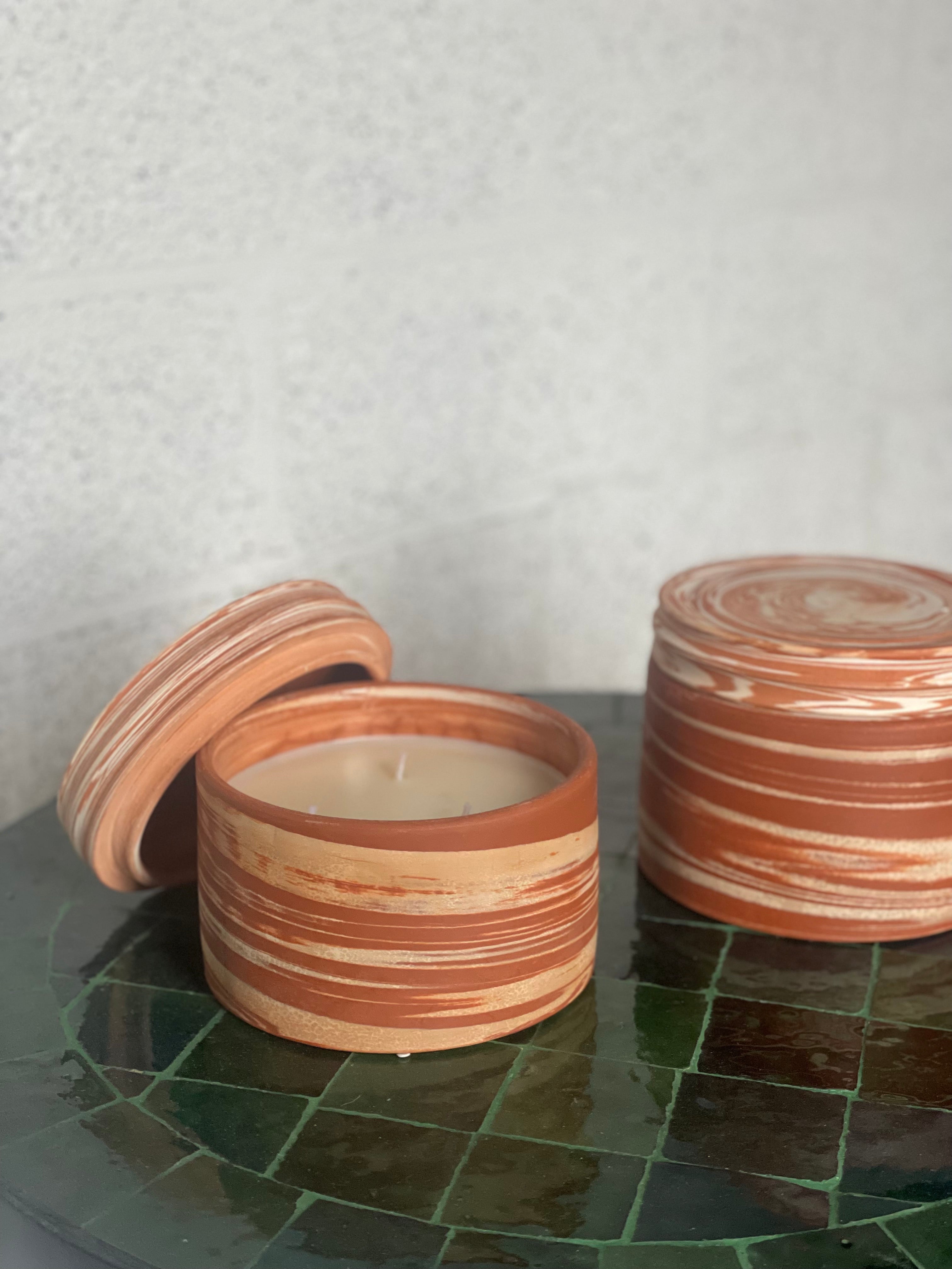 Onze geurkaarsen worden met de hand vervaardigd in Marokko, waar keramiek wordt gevormd, motieven met de hand geschilderd, leder bewerkt en raphia of textiel geweven. Elke pot draagt de signatuur van zijn maker en brengt karakter in elk interieur.