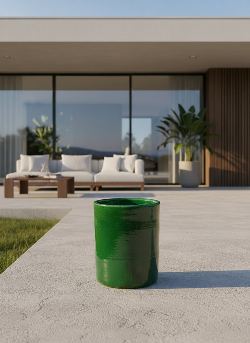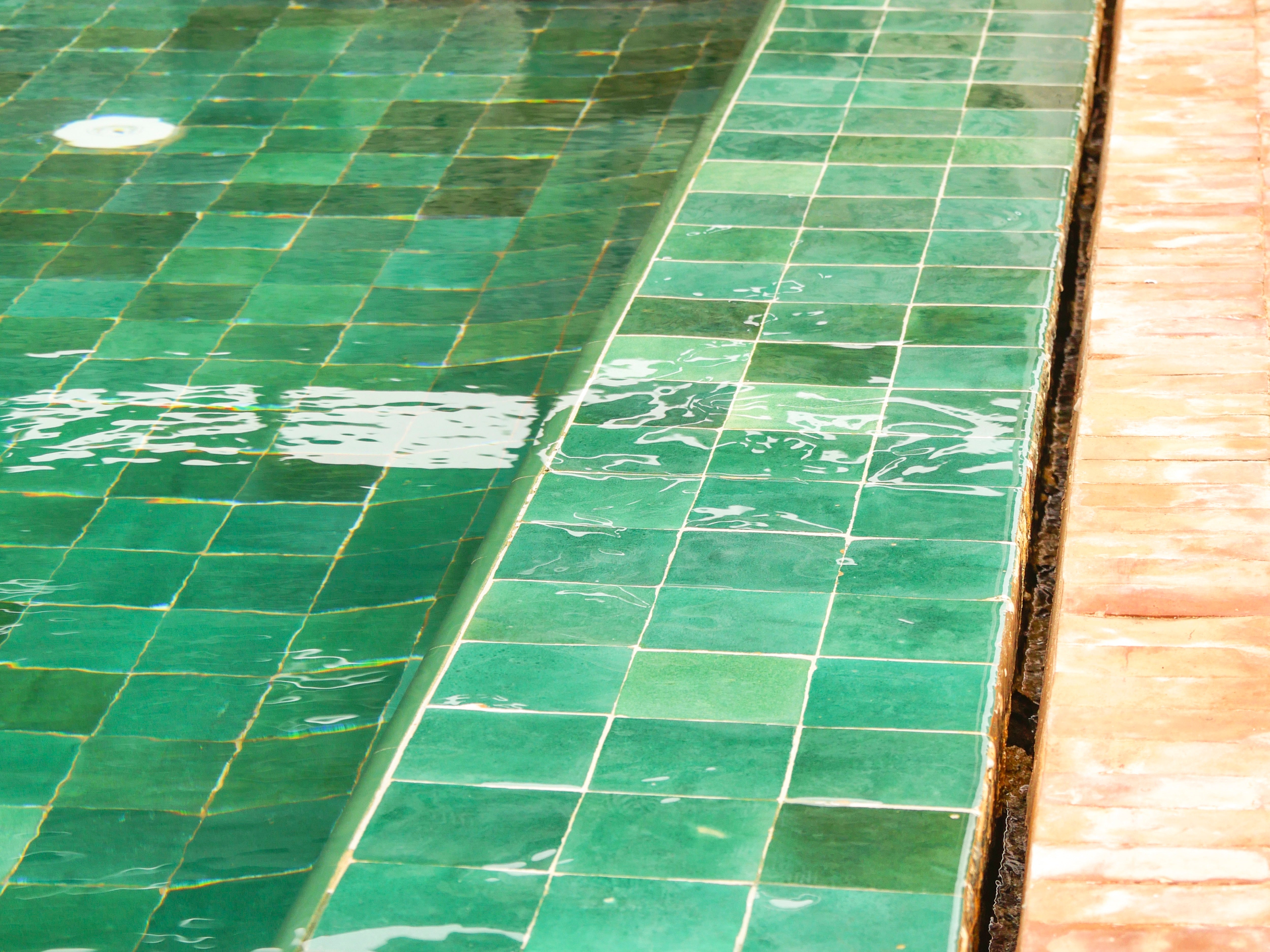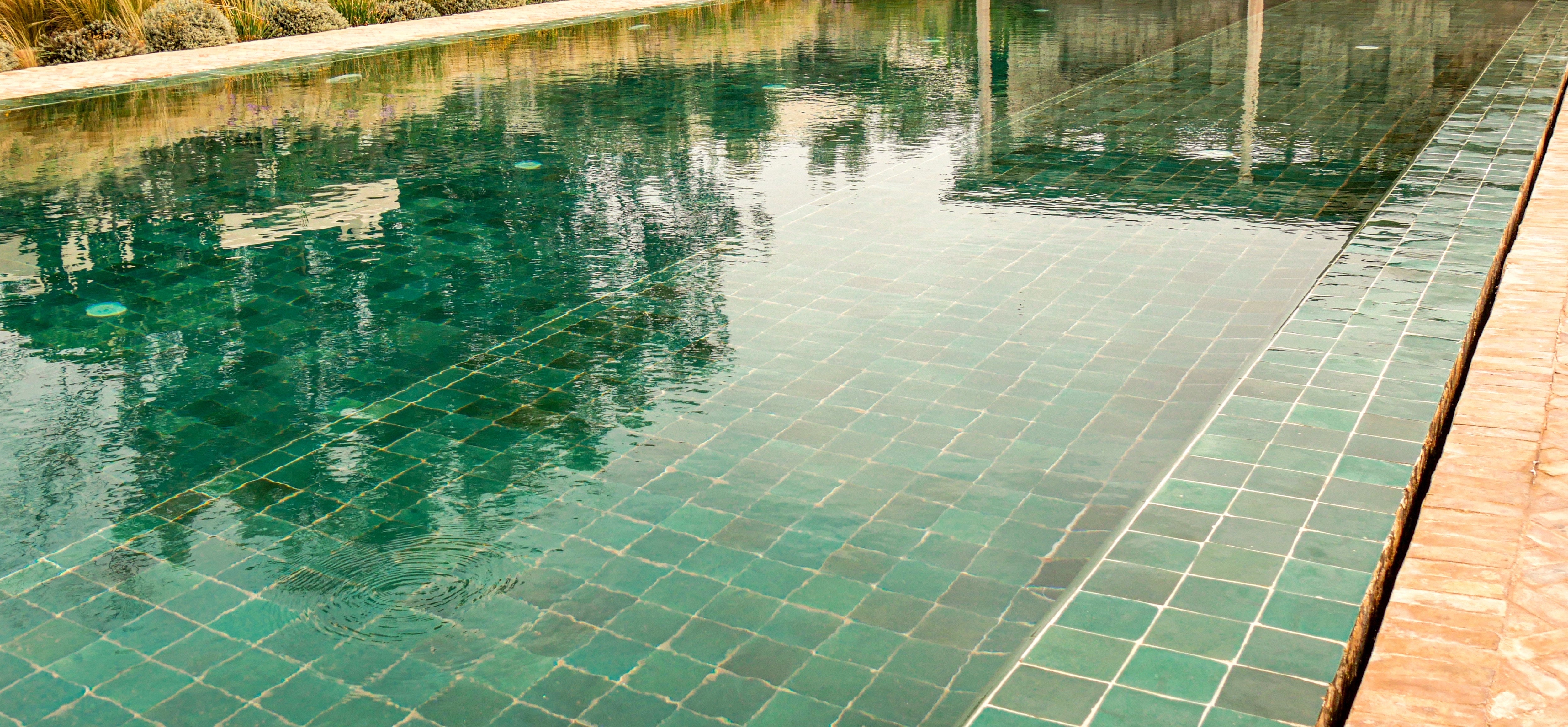De vloer van dit poolhouse is afgewerkt met bejmats "brut naturel". Deze handgevormde terracotta tegels hebben een lichte variatie in kleur en textuur, wat zorgt voor een natuurlijke en authentieke uitstraling. Perfect geschikt voor warme, zuiderse sferen – binnen én buiten.