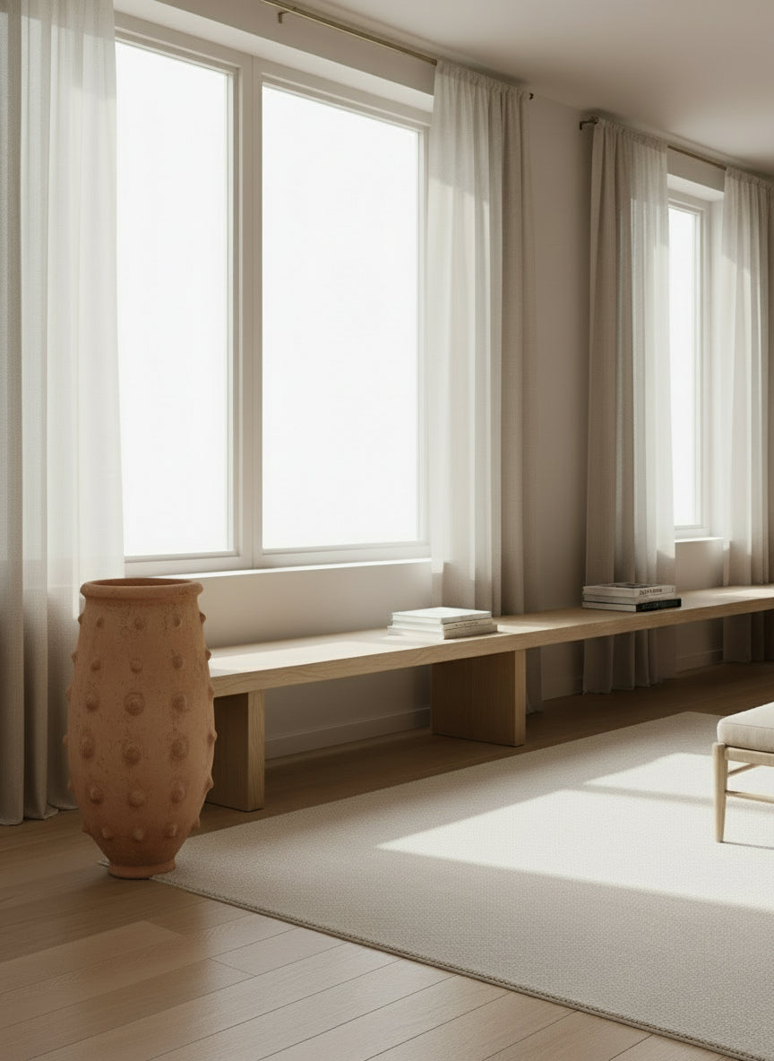 De zachte glans en natuurlijke tinten sluiten perfect aan bij de klassieke, verfijnde sfeer van het interieur.